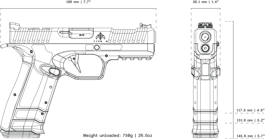 Featuring Archon’s AF-Speedlock technology, the Type B delivers exceptional recoil management, enabling fast and consistent follow-up shots. The low bore axis and ergonomic geometry support natural aiming, while the modular grip system provides secure handling and straightforward customization for individual user requirements. Manufactured from highly durable materials, the Type B ensures reliability and long-term dependability in demanding environments. It is suitable for professional duty use, personal defense, and competitive shooting.